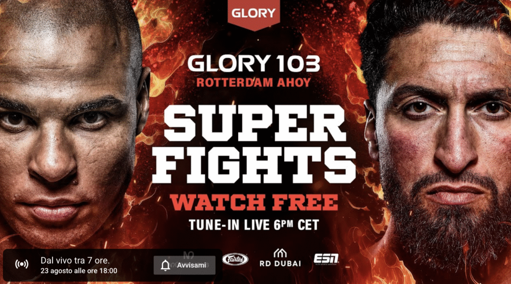 E' partita ufficialmente la vendita per il prossimo evento GLORY #104: parliamo di Last Heavyweight Standing, che si terrà all'RTM Stage di Rotterdam, Paesi Bassi, il prossimo 11 ottobre. Il titolo vacante dei pesi mediomassimi di GLORY sarà assegnato in occasione dello scontro tra l’ex campione Tarik Khbabez (52-12-1, 28 KO) e il fighter Bahram …